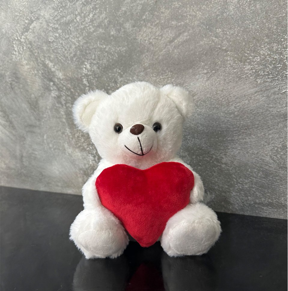 Αρκουδάκι λευκό με βελούδινη καρδιά